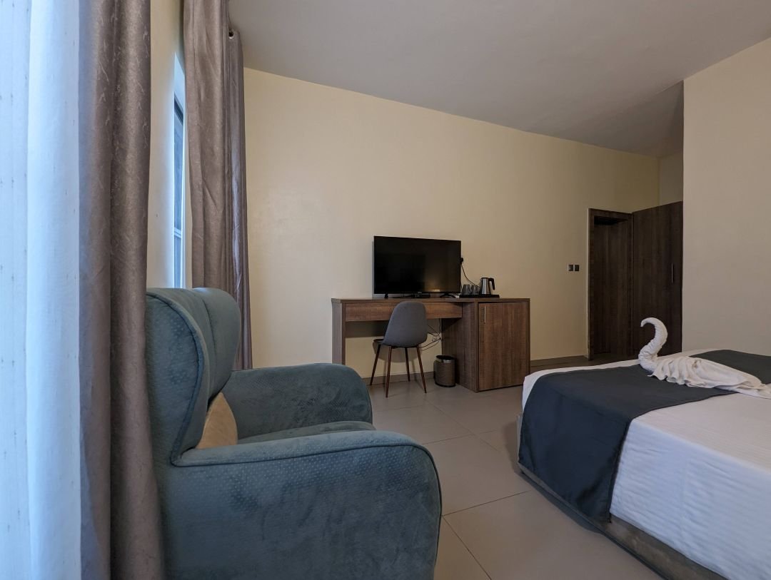 1 bedroom En-suite with shower and toilet, 6' x 5' bed 32-inch television, guest amenities, 1 living room with guest toilet, 50-inch television, Dining area, Kitchenette with refrigerator, hot plates, microwave, kitchenware, table ware, Complimentary tea tray