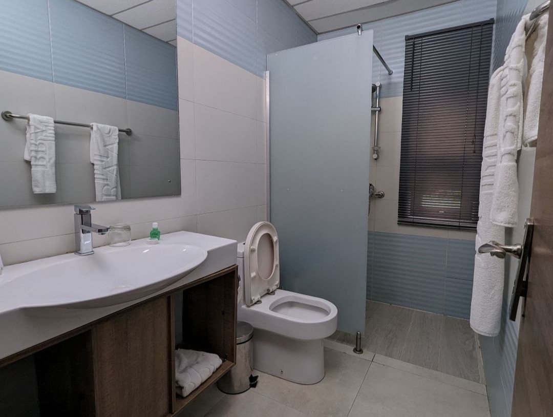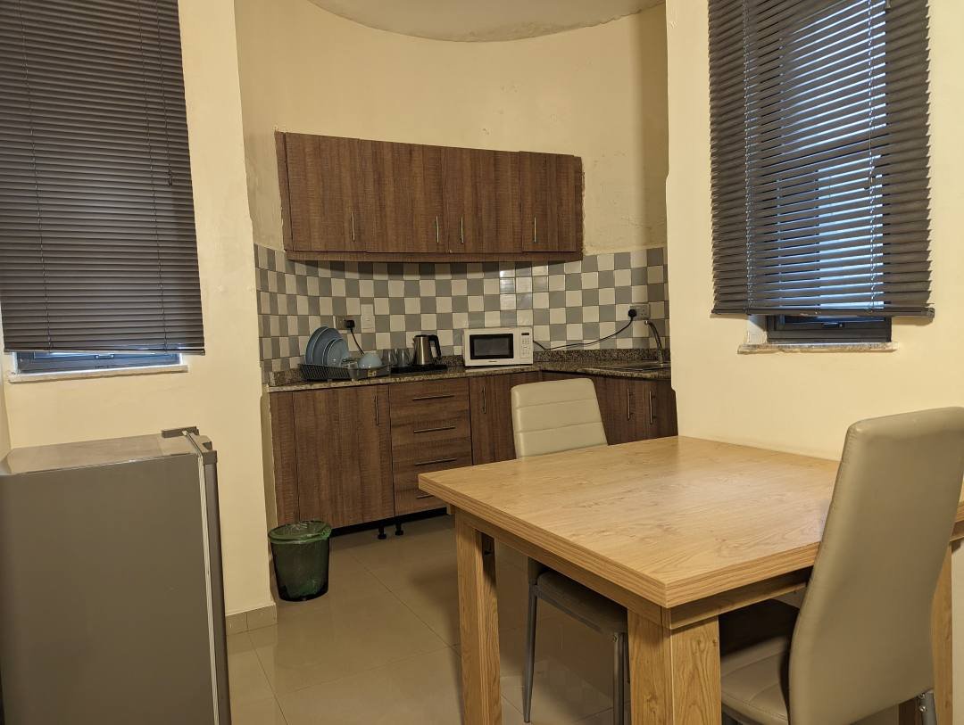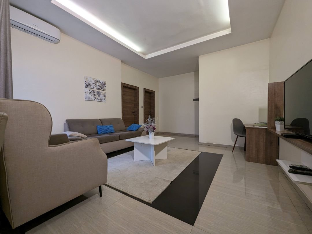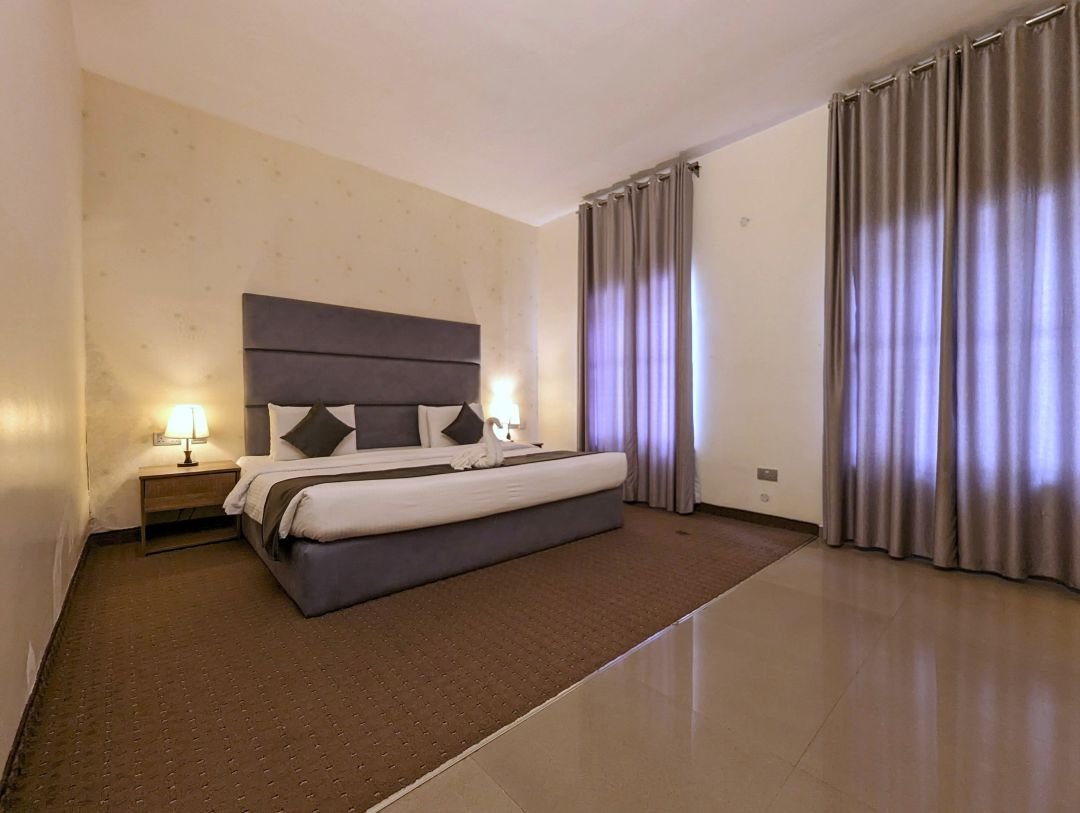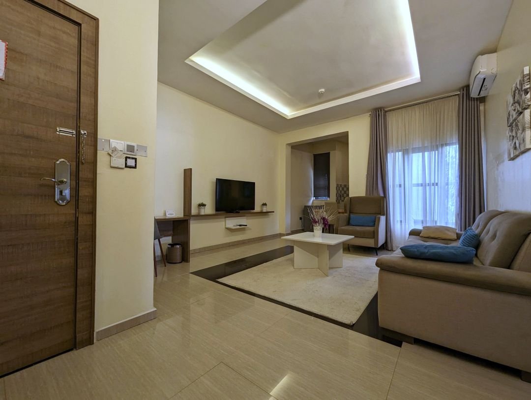 A One bedroom, 6/6 bed, kitchenette, complementary tea, refrigerator, A.C, Personal DSTV, Rain and Hand Shower bathroom system, Wardrobe, Safe Box, Free breakfast Vaucher x 2, Non smoking room